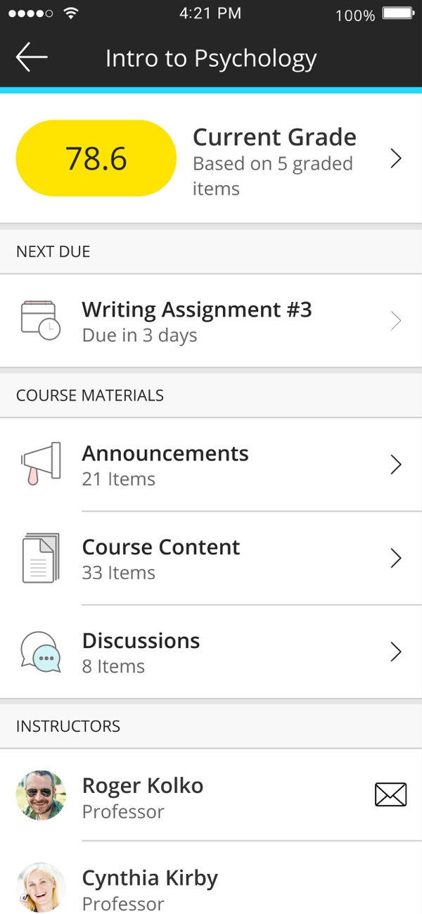 I was a key developer in the full software lifecycle of Blackboard mobile apps used by millions of college students daily to manage their course contents.