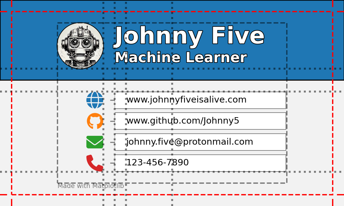 My business card is also an exercise in pixel-perfect Matplotlib, including how to integrate vector and raster graphics into a chart. Achieving this level of control over charts has been my goal ever since I first began using matplotlib, and is deceptively difficult to do.